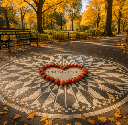 맞은편 센트럴 파크에는 ‘스트로베리 필즈(Imagine Memorial)’라 불리는 작은 추모 공간이 있습니다.