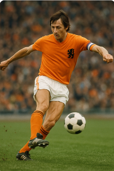 요한 크루이프는 네덜란드 축구의 살아 있는 전설이자 ‘토털사커’의 상징으로, 현대 축구 철학에 지대한 영향을 미친 인물입니다.